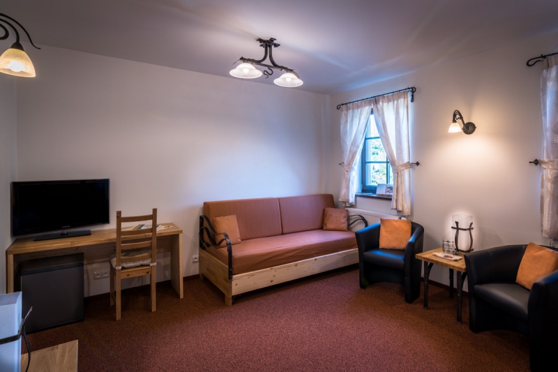 Druhá Ložnice: manželská postel s kvalitní vysokou matrací, TV s plochou obrazovkou, programy v češtině, němčině, polštině, minibar, WiFi. Tato ložnice lze rozšířit o plnohodnotné jednolůžko s kvalitní vysokou matrací.