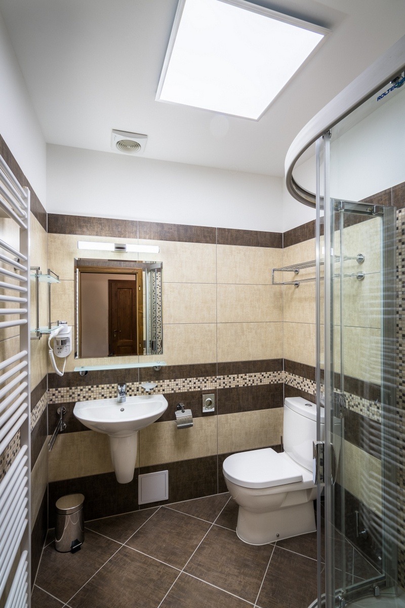 - Sprchový kout, Toaleta – Koupelna je součástí pokoje